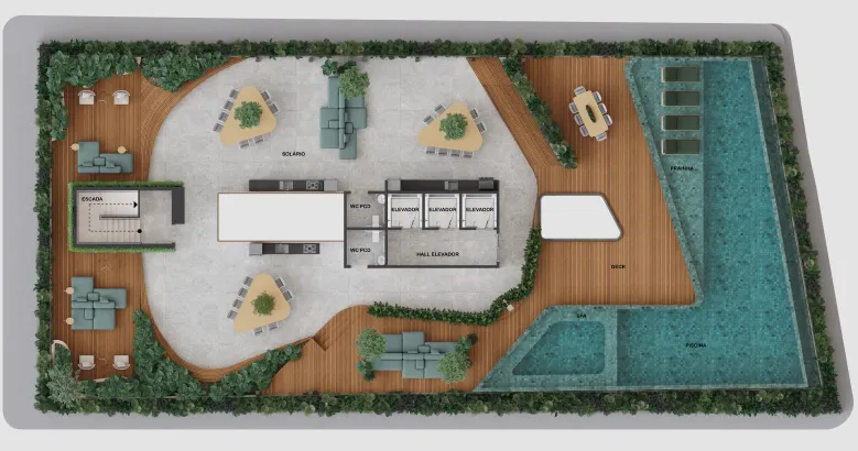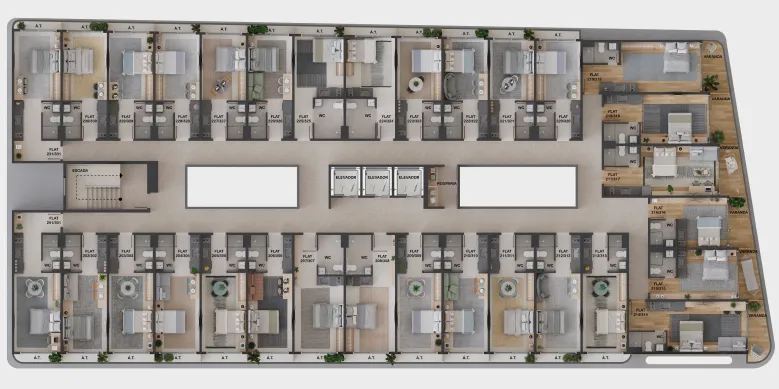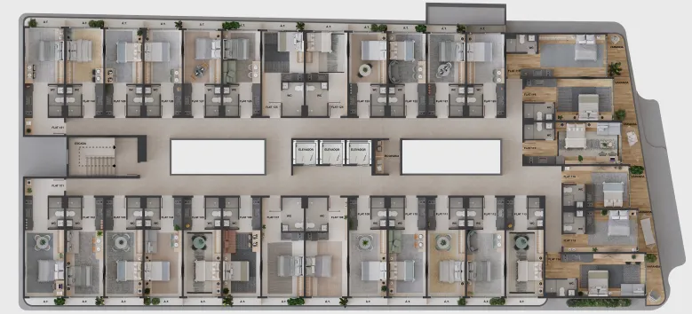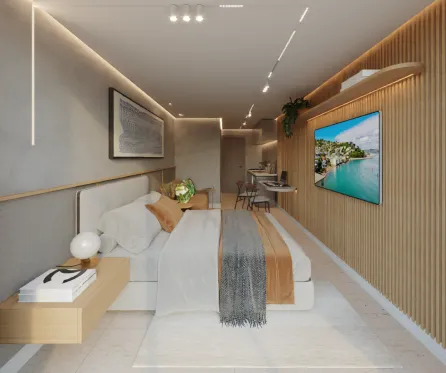 São tipologias de flats que variam de 20 a 39m2, projetadas para otimizar o espaço e a sua experiência à beira-mar. Todos os andares contam com rouparia e 3 elevadores para mais praticidade.
